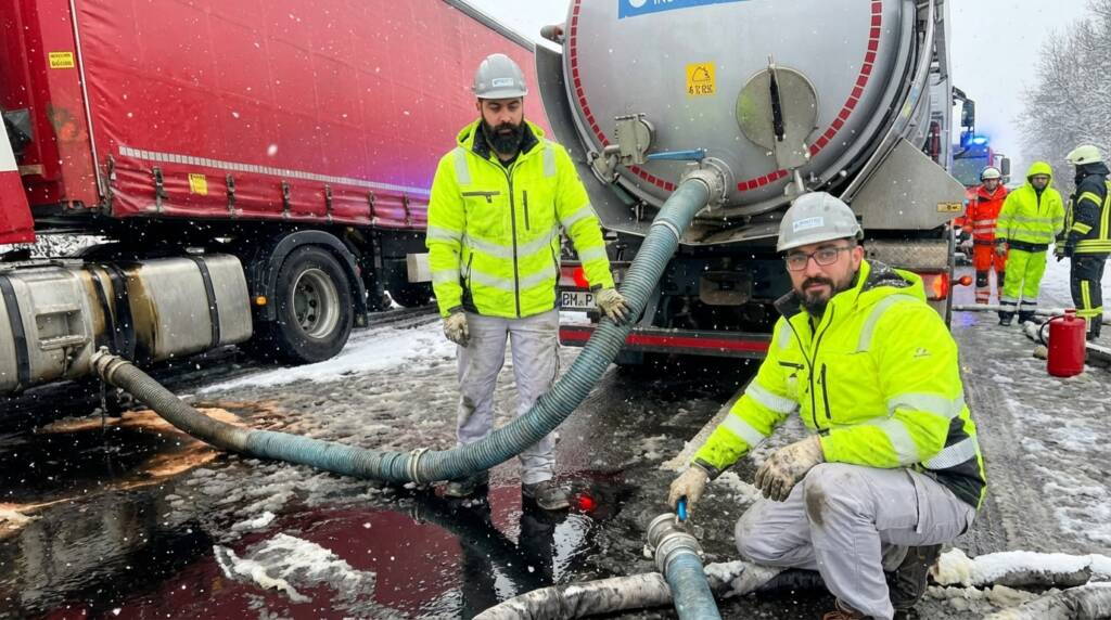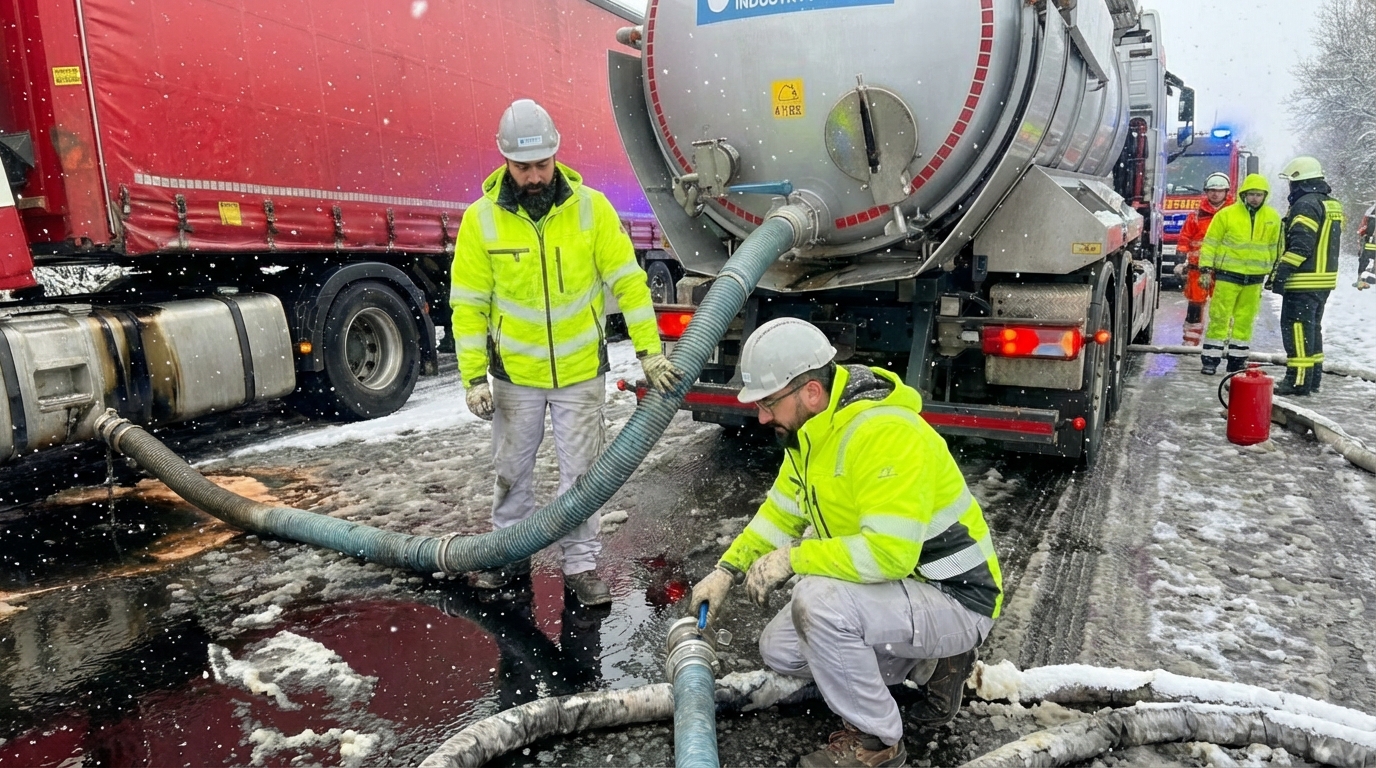 Wir saugen fast alles auf – von Ölspuren und Schlämmen bis hin zu trockenen Schüttgütern, die nach einem LKW-Unfall die Fahrbahn blockieren.