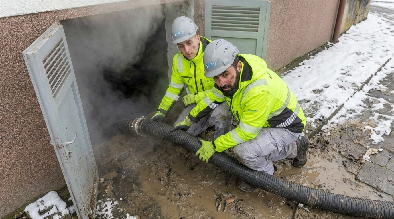 - Ein leistungsstarker Saugbagger oder Spezialsaugwagen wird direkt vor Ihrem Gebäude in Position gebracht.